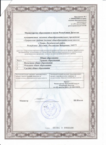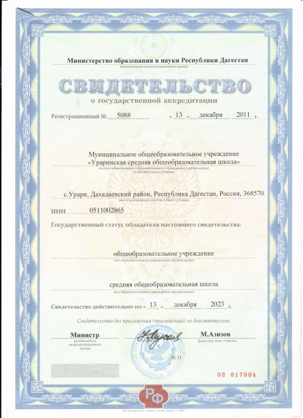 | Адрес местонахождения образовательной организации* | 368799, РД, Дахадаевский район, с. Урари, ул Р. Абдуллаева 201 |